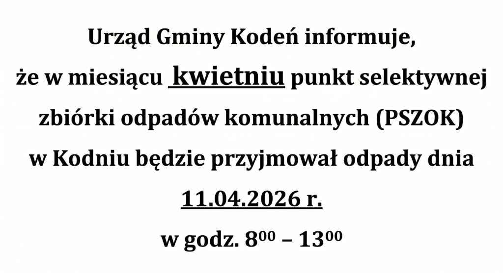 12:42 20.03.2026 Informacja PSZOK Wydrukuj Pobierz PDF Data opublikowania: 12:42, 20 marca 2026 Kategorie: Aktualności, Gospodarka odpadami